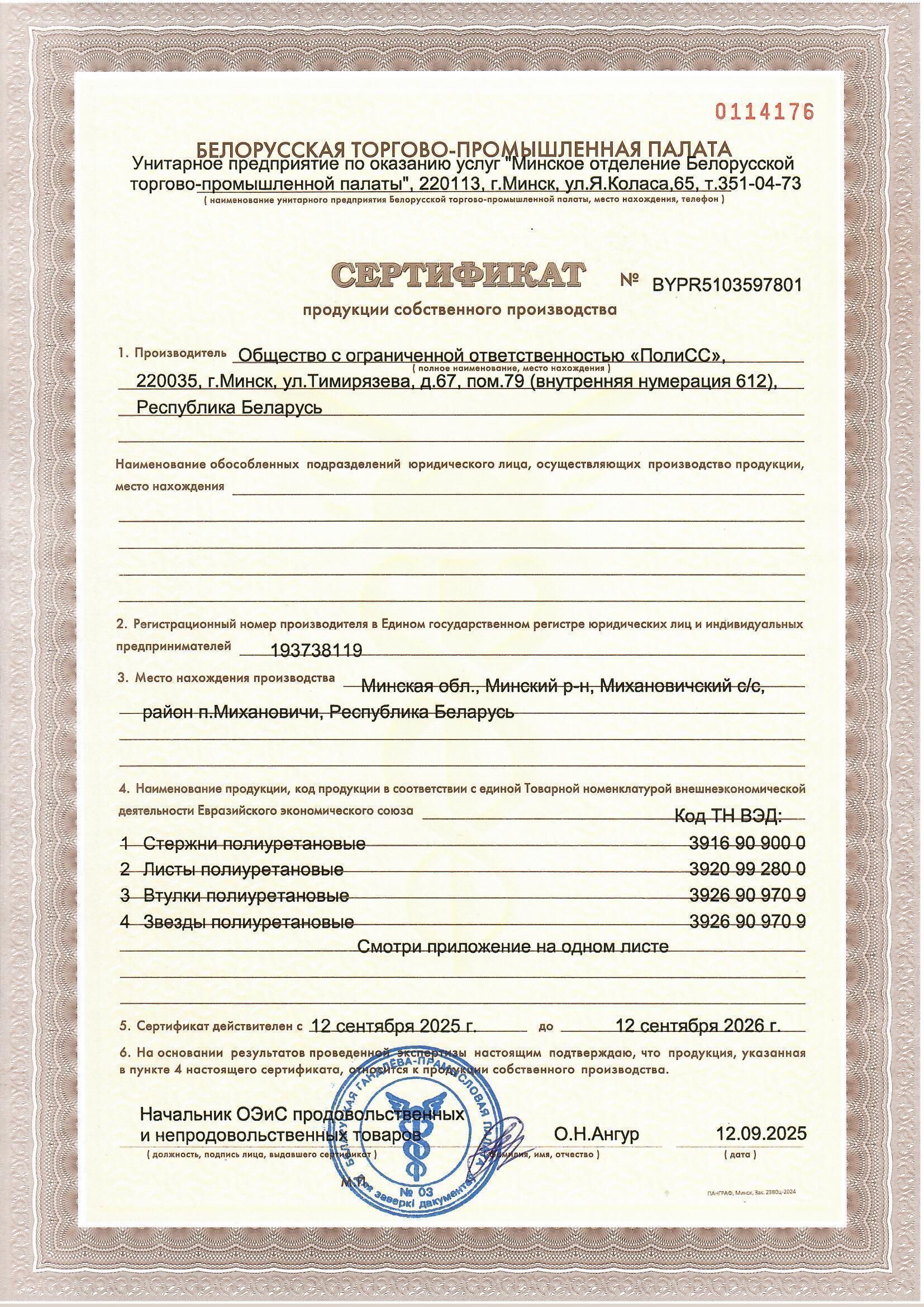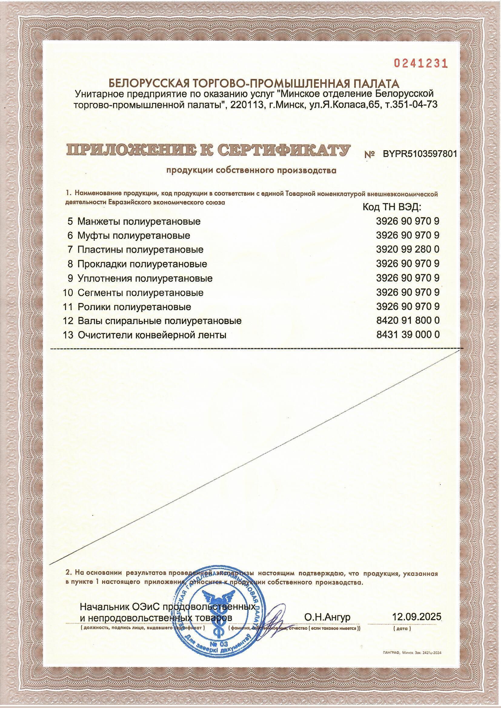 Имеем все разрешения на осуществление деятельности по производству изделий формовых из литьевого полиуретана